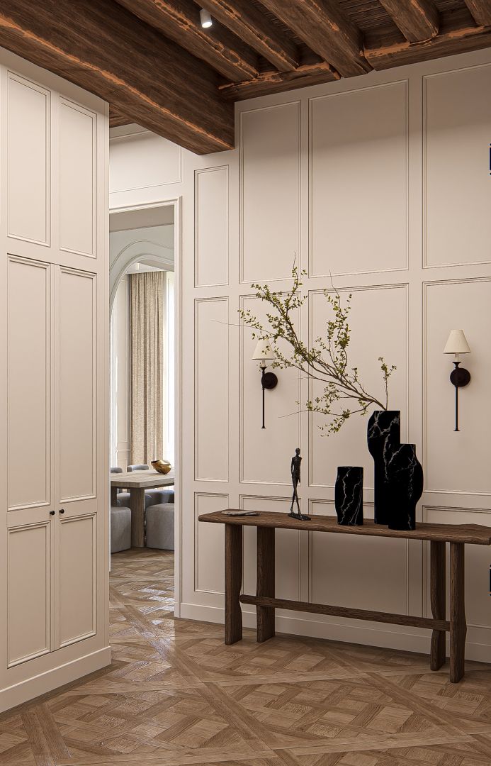 J'attache beaucoup d'importance à l'espace, aux volumes et aux matériaux. Raconter une histoire à travers des compositions de couleurs, matières, textures, ambiance, est une recherche constante dans mon travail. Chercher à créer et à donner une âme à un lieu, le rendre feutré et chaleureux en prenant tout particulièrement de l'importance sur le jeu de la lumière et du détail. La variété architecturale entre des lieux chargés de patrimoine et d'autres en manque de repères, ce mélange, cette recherche passionnante dans la mise en place des éléments rendent ce métier sans limite, me laissant toujours dans l'impatience du nouveau projet.